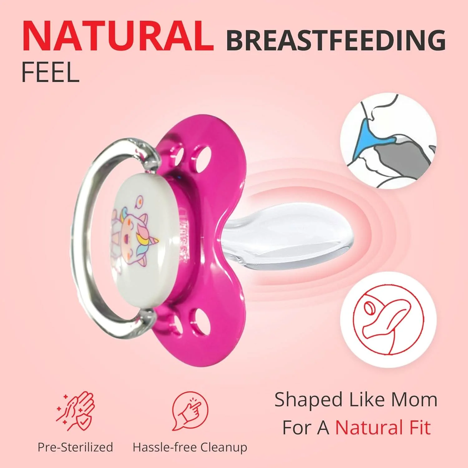 Binky Orthodontic Pacifier With Snap On Cover - Wild and Cuddly Series - Unicorn & Panda
